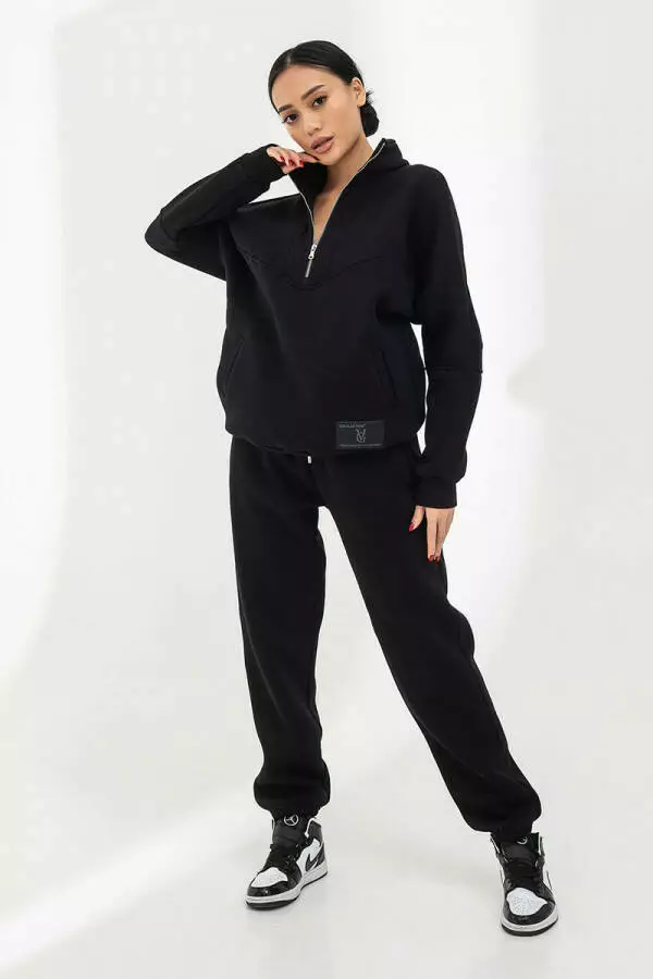 Штани та реглан чорного кольору доступні в у всіх розмірах для замовлення. Костюм теплий і комфортний, вільного крою. Тканина трикотаж на флісі, склад 80% бавовна й 20% поліестер. Широкий ворот з сріблястою блискавкою зробить ваш аутфіт дуже гарним і стильним. Штани супер комфортні, вільні з двома кишенями та резинками біля гомілки, за допомогою якої створюється крутий обʼємний образ. Натуральна тканина відводить зайву вологу та добре утримує тепло, пропускає повітря. Ще один плюс цього костюму що він не кошлатиться і не линяє. Також можно носити його, як разом так і поєднувати з іншими елементами вашого гардеробу і завжди виглядати стильно, яскраво і різноманітно.