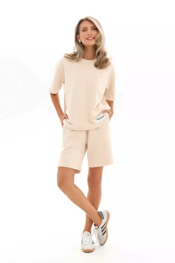 Цей жіночий костюм від україньского виробника German Volf, який складається з зручної футболки та вільних шортів, розроблений для максимального комфорту і стилю у звичайному житті. Виготовлений із м'якої, приємної до тіла тринитки, яка добре тримає форму і забезпечує дихання шкіри. Футболка з комфортною посадкою не обмежує рухів і гармонійно пасує будь-якій фігурі. Шорти доповнені зручними боковими кишенями, що додає практичності і підкреслює легкий, розслаблений стиль. Завдяки сучасному крою та високоякісному матеріалу, цей костюм стане ідеальним вибором для літніх прогулянок, відпочинку чи активного дозвілля.