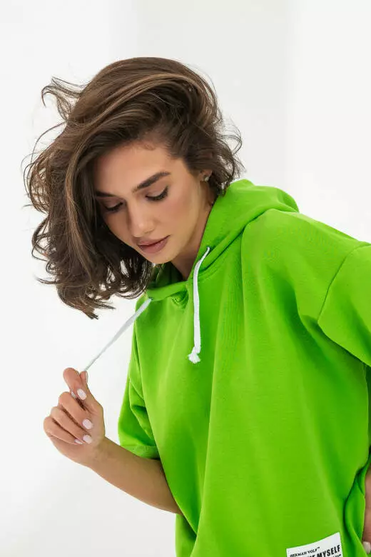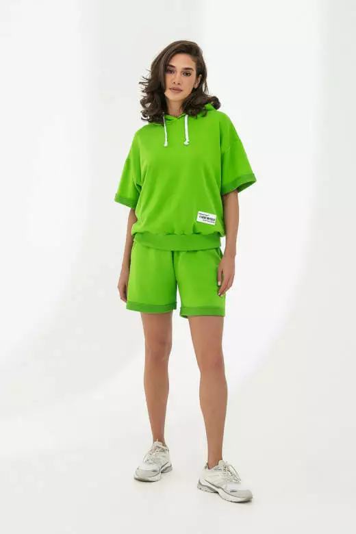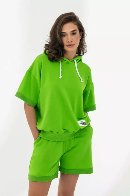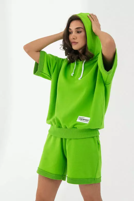 Костюм жіночий футболка з капюшоном та шорти, зелений колір