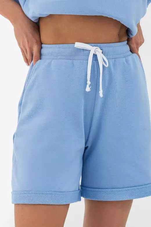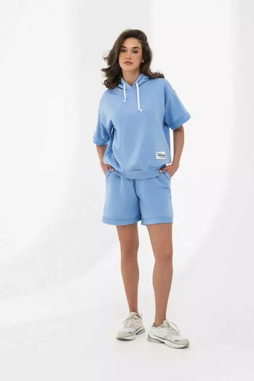 Костюм жіночий літній футболка з капюшоном та шорти, блакитний