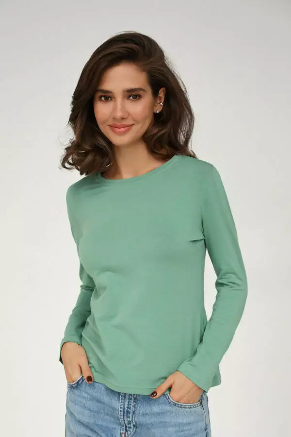 Стильний базовий трикотажний жіночий лонгслів із рукавами German Volf Зелений L(44) 23129
