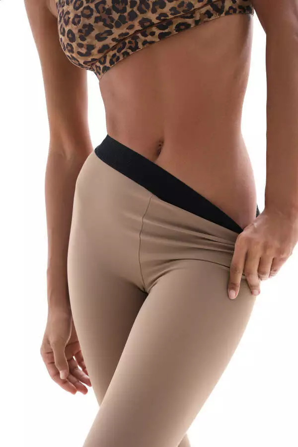 Лосини з біфлексу, бежеві матові з чорним поясом – сучасні бежеві