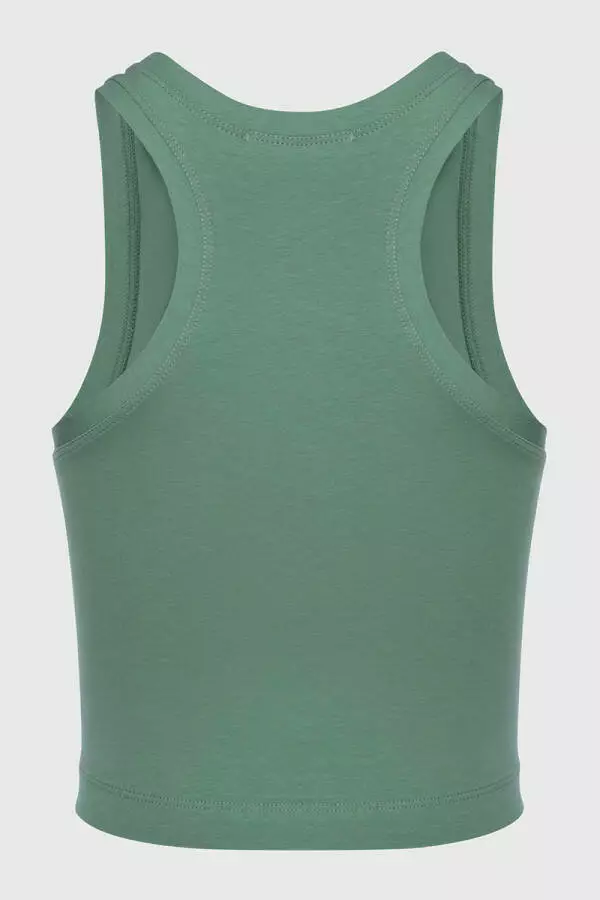 Особливий крій цієї майки-боксерки дозволяє відчути максимальну свободу. Глибокі вирізи на плечах створюють спортивний вигляд та забезпечують комфорт навіть при активних рухах, що робить її ідеальним варіантом для тренувань, занять фітнесом або йогой. Коротка довжина та облягаючий фасон додають нотку сучасності та легкості, роблячи майку чудовим вибором для повсякденного носіння або створення багатошарових образів. Зелений колір додає свіжості та унікальності, надаючи можливість легко комбінувати майку з іншими речами гардеробу.