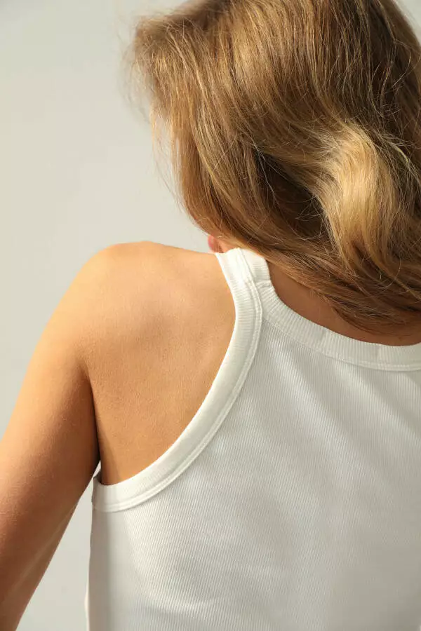 Рельєфна текстура рубчика надає виробу не тільки стильного зовнішнього вигляду, але й додаткової еластичності, завдяки чому майка відмінно зберігає форму навіть після багаторазових прань. Молочний відтінок додає образу свіжості та легкості, роблячи цю модель універсальною та придатною для будь-якого випадку – будь-то повсякденний образ або базовий елемент гардеробу під складніші ансамблі.