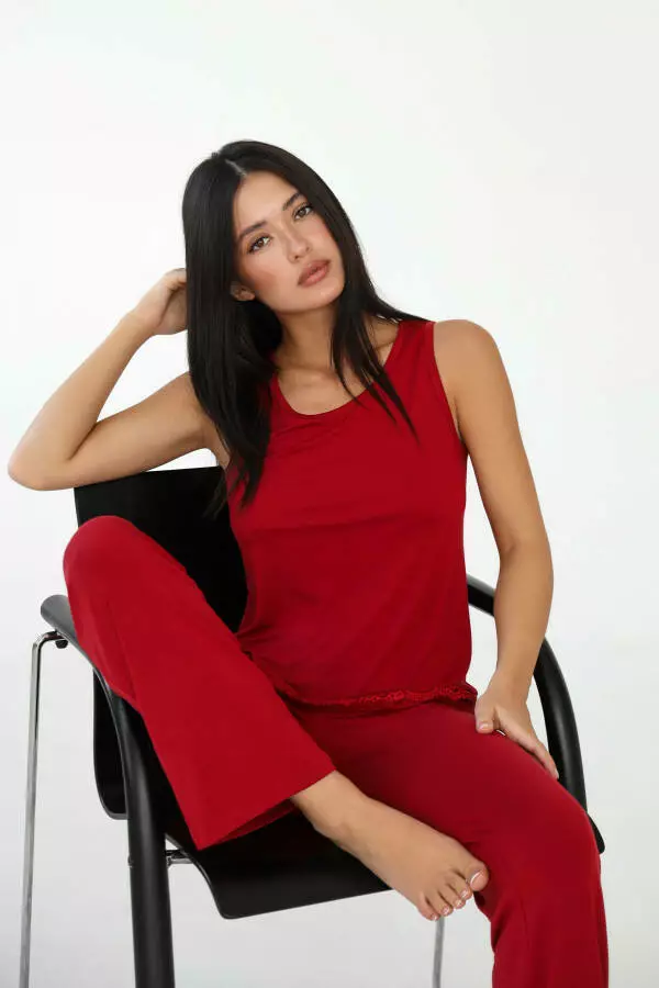Насичений бордовий колір – це колір елегантності, жіночності та впевненості. Він створює атмосферу затишку, додаючи нотку розкоші та вишуканості, що робить майку особливою. Бордовий колір підійде для будь-якого типу шкіри, підкреслюючи природну красу, та виглядає привабливо і вишукано, що надає образу завершеності. Такий відтінок легко комбінується з іншими елементами домашнього гардеробу – піжамними шортами, штанами або затишним халатом, створюючи стильний та гармонійний ансамбль.