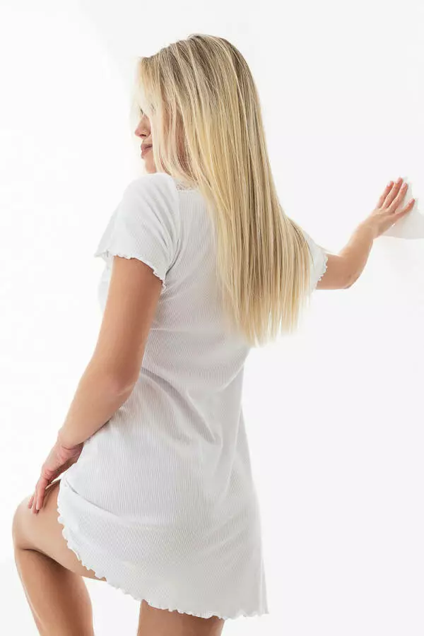 Нічна жіноча сорочка із трикотажу в рубчик з мереживом German Volf Білий M(44)