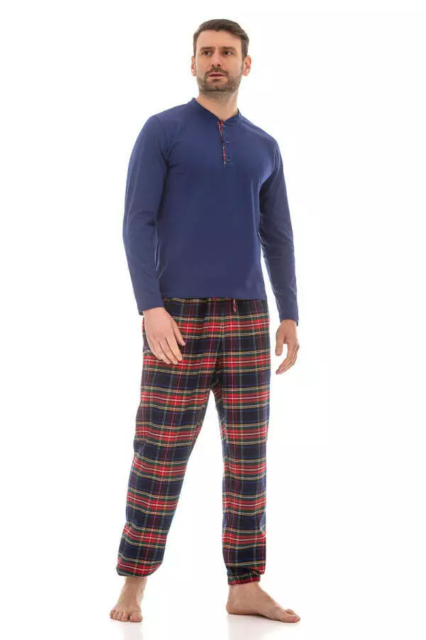 - Тип модели: Піжама чоловіча лонгслів із куліру та фланелеві штани