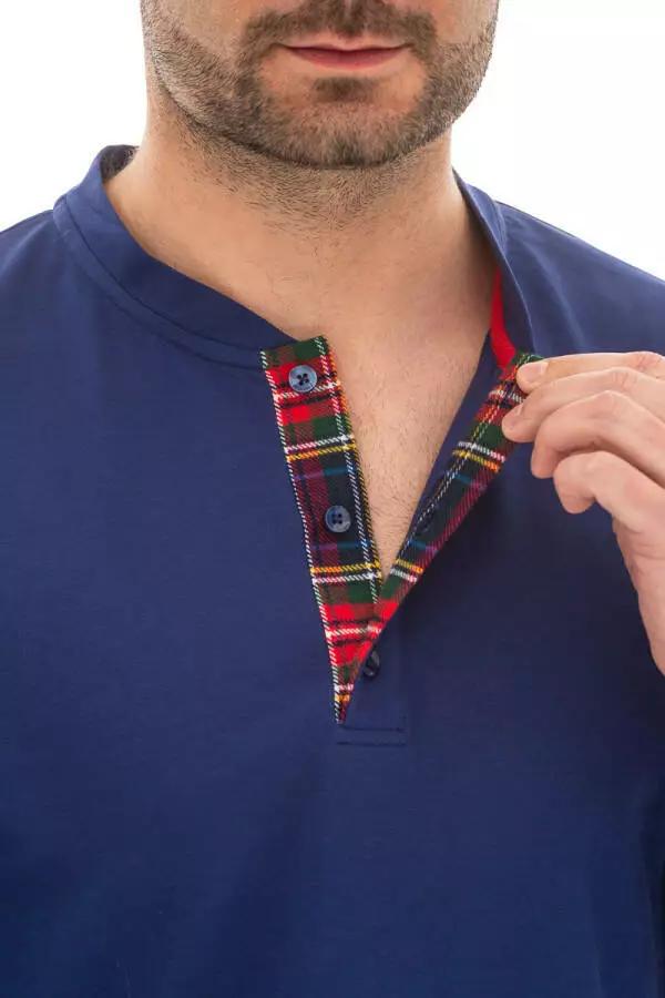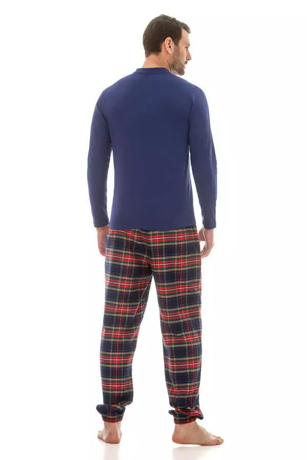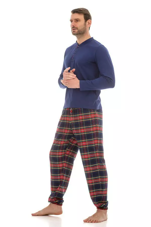 - Тип модели: Піжама чоловіча лонгслів із куліру та фланелеві штани
