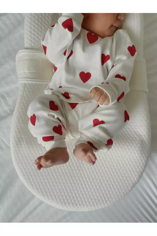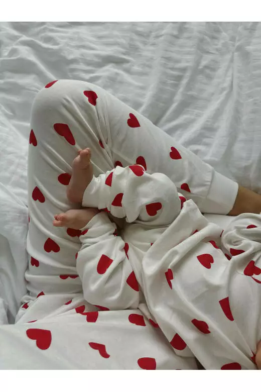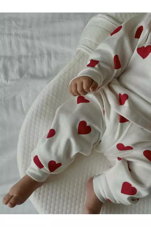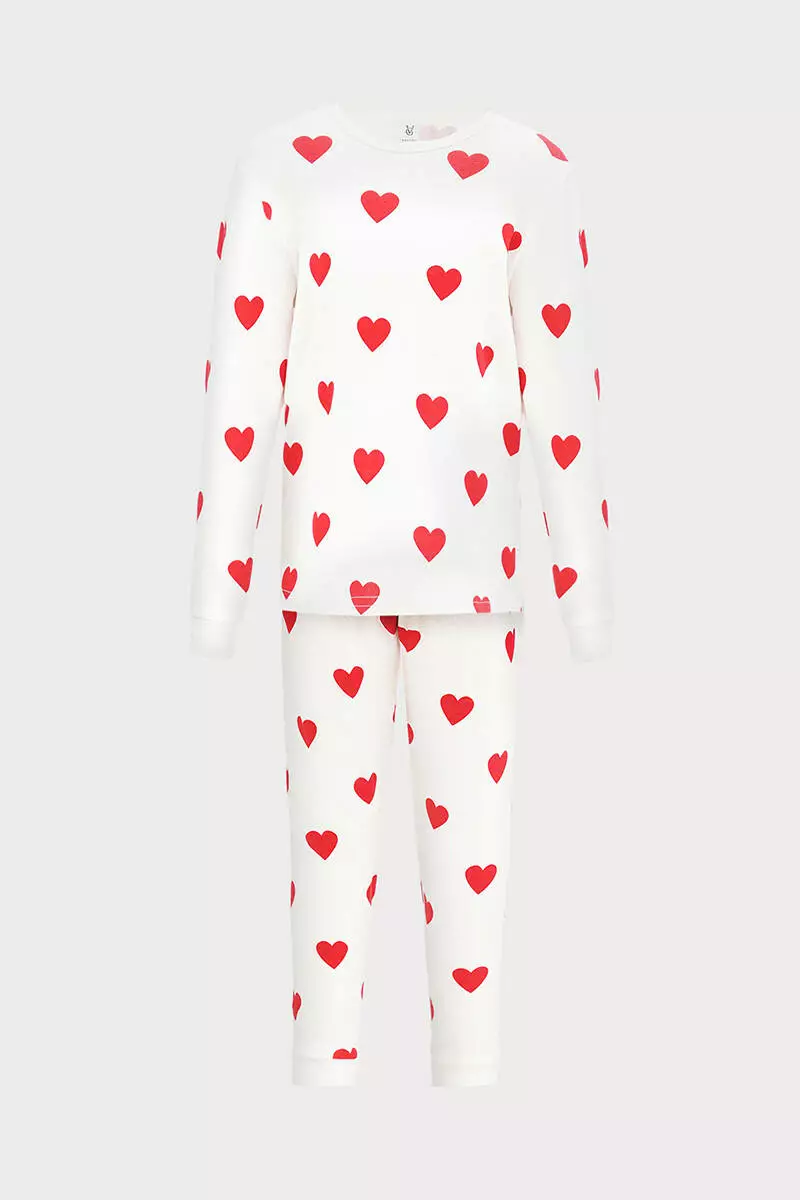 Піжама дитяча реглан та штани, принт червоне сердечко, білого кольору