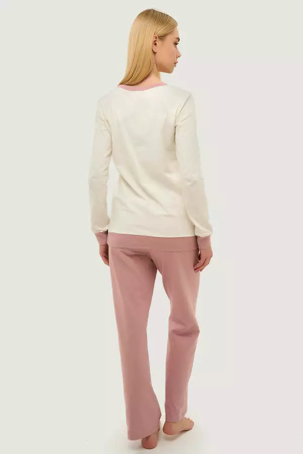 Особливістю цього комплекту є його універсальність і зручність. Рожевий колір додає піжамі нотку ніжності й романтичності, роблячи її ідеальним вибором для жінок, які цінують стиль навіть у домашньому гардеробі. Нейтральний відтінок дозволяє поєднувати піжаму з різними аксесуарами, такими як домашні капці чи теплі шкарпетки, створюючи затишний та стильний образ для вечірнього відпочинку або ранкових ритуалів.