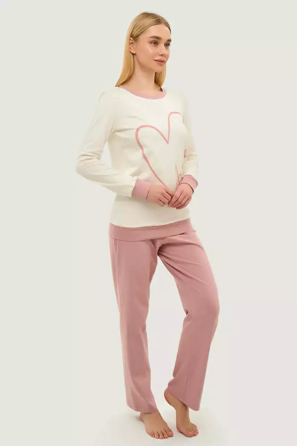 Особливістю цього комплекту є його універсальність і зручність. Рожевий колір додає піжамі нотку ніжності й романтичності, роблячи її ідеальним вибором для жінок, які цінують стиль навіть у домашньому гардеробі. Нейтральний відтінок дозволяє поєднувати піжаму з різними аксесуарами, такими як домашні капці чи теплі шкарпетки, створюючи затишний та стильний образ для вечірнього відпочинку або ранкових ритуалів.