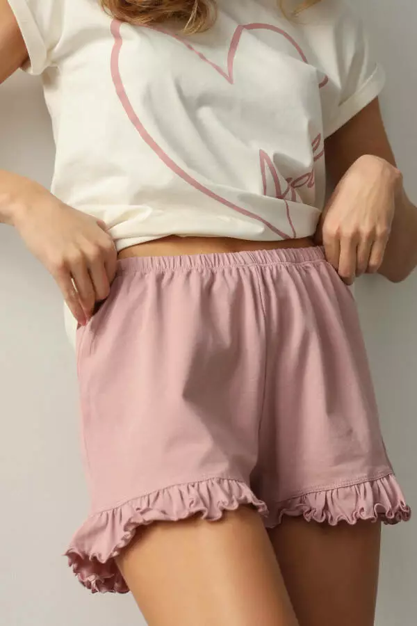 Жіноча піжама "Amour" у ніжному рожевому кольорі від German Volf, що складається з футболки та шортів, – це поєднання комфорту, стилю та романтики для теплих ночей і затишного домашнього відпочинку. Виконана з м'якого, приємного на дотик матеріалу, ця піжама забезпечує відчуття легкості та прохолоди, що робить її ідеальним вибором для весняно-літнього сезону. Ніжний рожевий колір надає комплекту витонченості та підкреслює жіночність, дозволяючи виглядати стильно навіть удома.