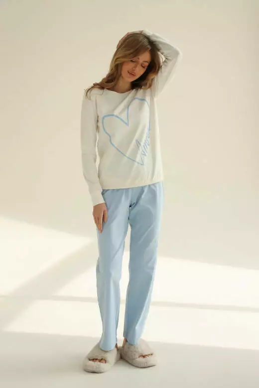 Піжама жіноча лонгслів та штани, колір блакитний
