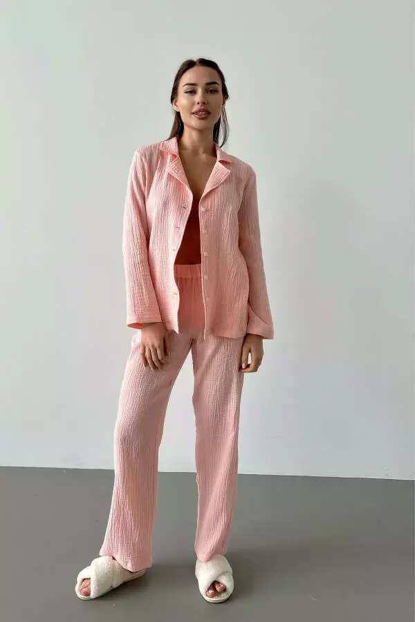 Піжама жіноча з муслінової тканини складається з штанів і кофти з