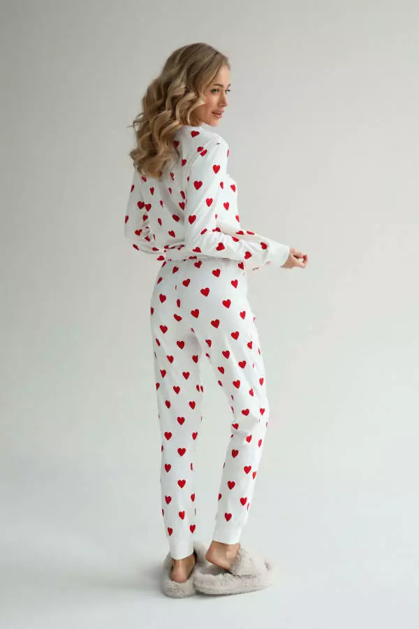 Насолоджуйтеся затишком і теплом у чудовій піжамі від відомого виробника German Volf! Виготовлена з м'якої 100% бавовни, ця піжама дарує затишок і забезпечує приємний сон. Вона стане ідеальним вибором для затишних вечорів вдома. Піжама складається з штанів і кофти з довгим рукавом, що підкреслить ваш чарівний образ. Завдяки високоякісним матеріалам, ця піжама забезпечить Вам тепло і комфорт протягом всієї ночі. Оберіть цю чудову піжаму з принтом сердечок і насолоджуйтесь заслуженим відпочинком!