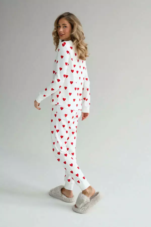 Піжама жіноча трикотажна реглан та штани German Volf Білий (принт червоне серце) XL(48) 23179