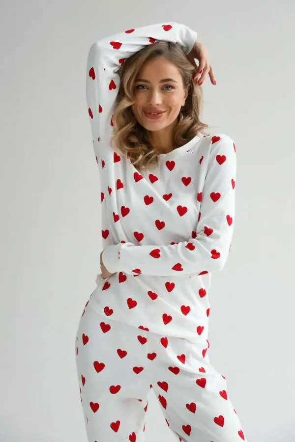 Насолоджуйтеся затишком і теплом у чудовій піжамі від відомого виробника German Volf! Виготовлена з м'якої 100% бавовни, ця піжама дарує затишок і забезпечує приємний сон. Вона стане ідеальним вибором для затишних вечорів вдома. Піжама складається з штанів і кофти з довгим рукавом, що підкреслить ваш чарівний образ. Завдяки високоякісним матеріалам, ця піжама забезпечить Вам тепло і комфорт протягом всієї ночі. Оберіть цю чудову піжаму з принтом сердечок і насолоджуйтесь заслуженим відпочинком!