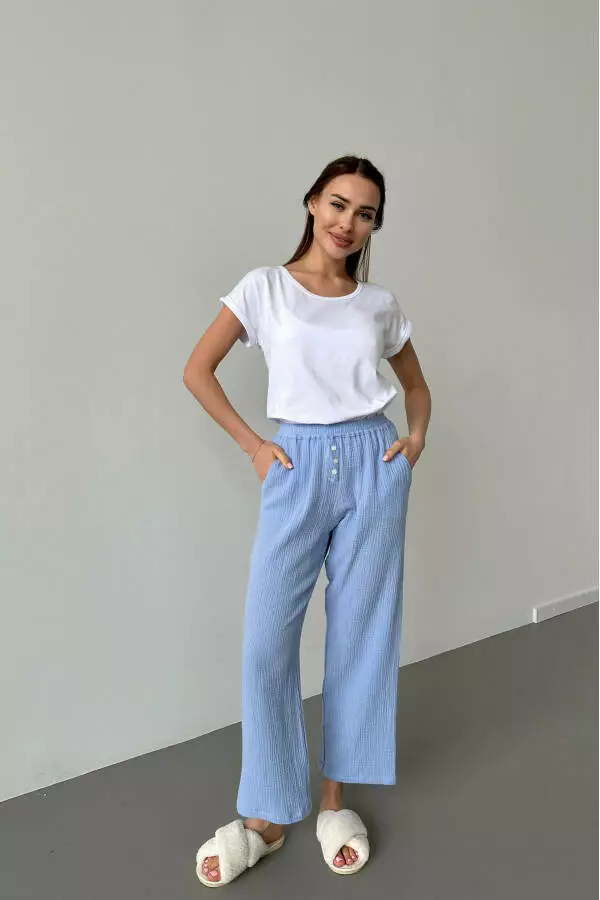 Піжамний комплект футболка біла та штани муслінові German Volf Білий та волошковий XS(40) 24036