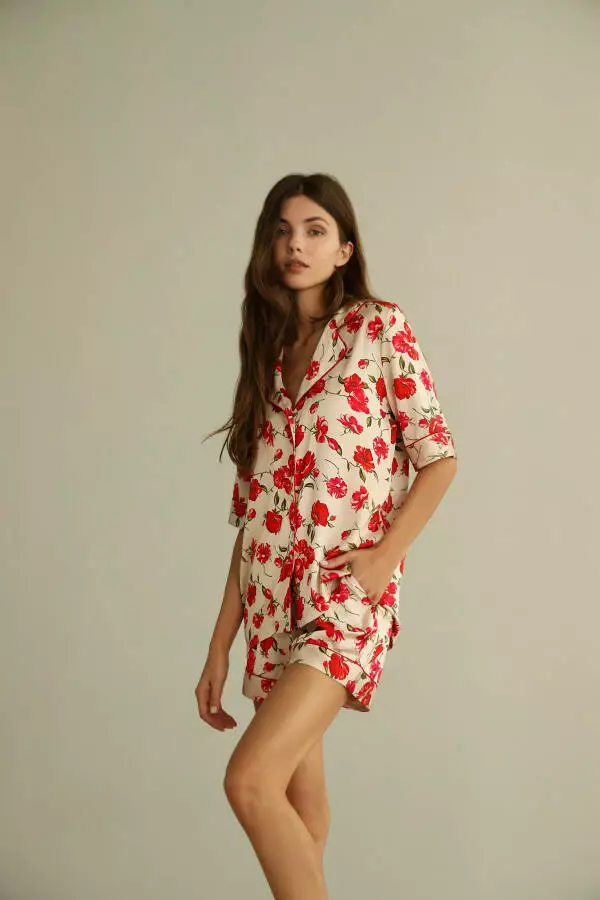 Піжамний шовковий комплект з квітковим