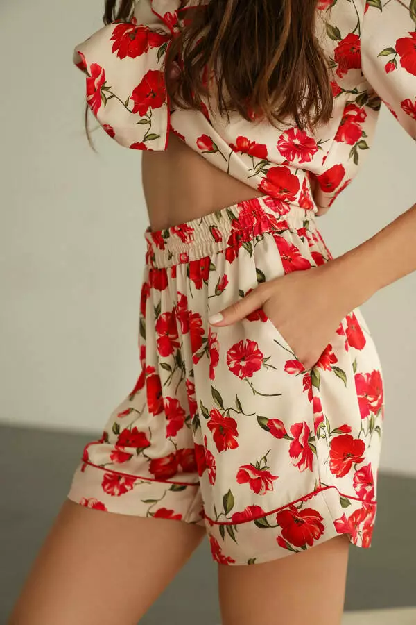 - Тип модели: Піжамний комплект кофта з коротким рукавом та шорти