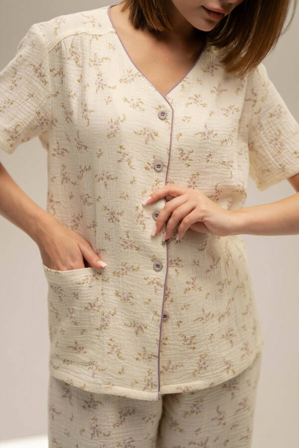 Піжамний комплект мусліновий сорочка з коротким рукавом та штани German Volf 25061 молочний (принт квіти) S 904183