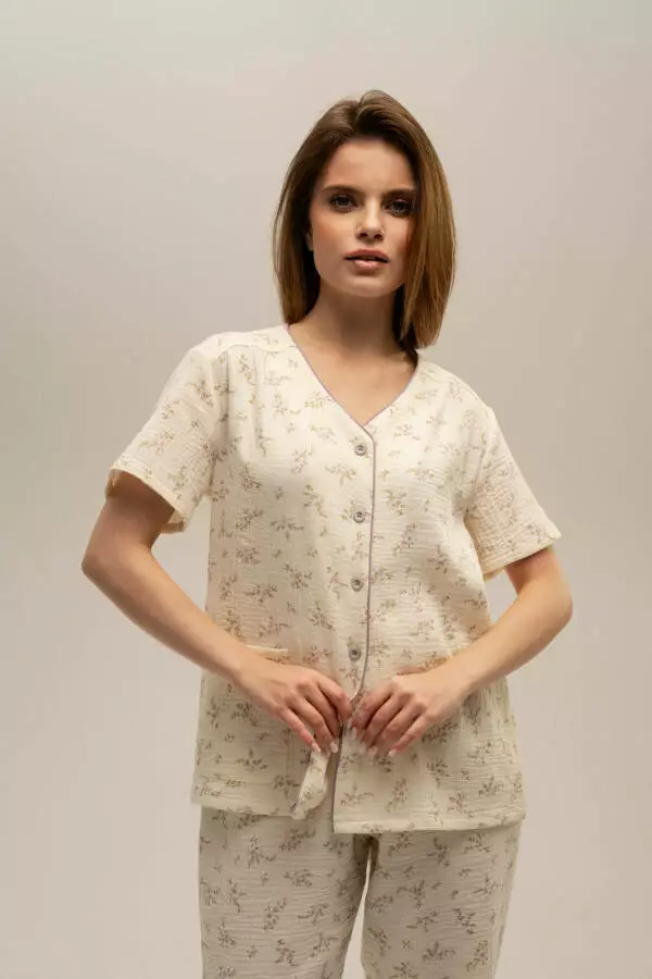 - Тип модели: Піжамний комплект мусліновий сорочка з коротким рукавом та штани