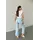 Піжамний комплект жіночий футболка біла та штани муслінові, колір блакитний
