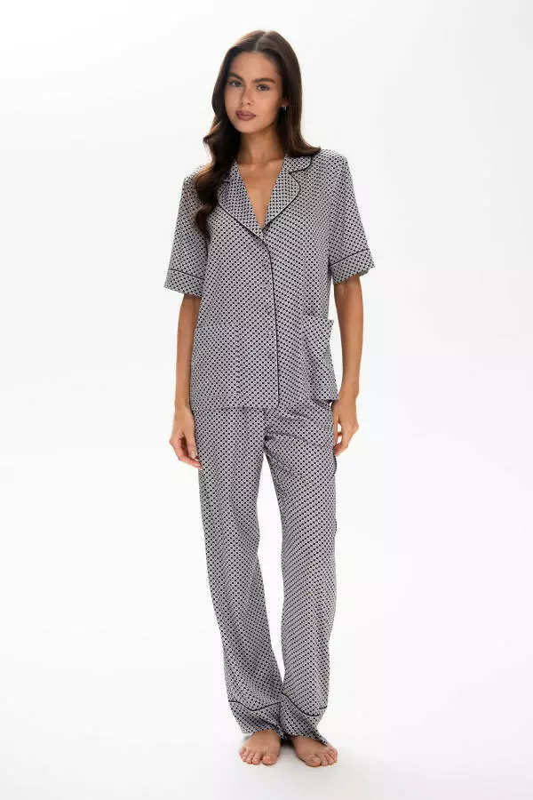 Цей піжамний костюм представлений у витонченому принті в сірому кольорі який підкреслює його елегантність та додає нотку розкоші. Вишуканий дизайн та висока якість виконання роблять його не просто домашнім одягом, а справжнім втіленням стилю та смаку. Бренд German Volf славиться своєю увагою до деталей та використанням тільки найкращих матеріалів. Піжами жіночі цього бренду – це символ якості та стилю. Купити піжаму жіночу від German Volf – це зробити вибір на користь розкішного комфорту та бездоганного стилю.