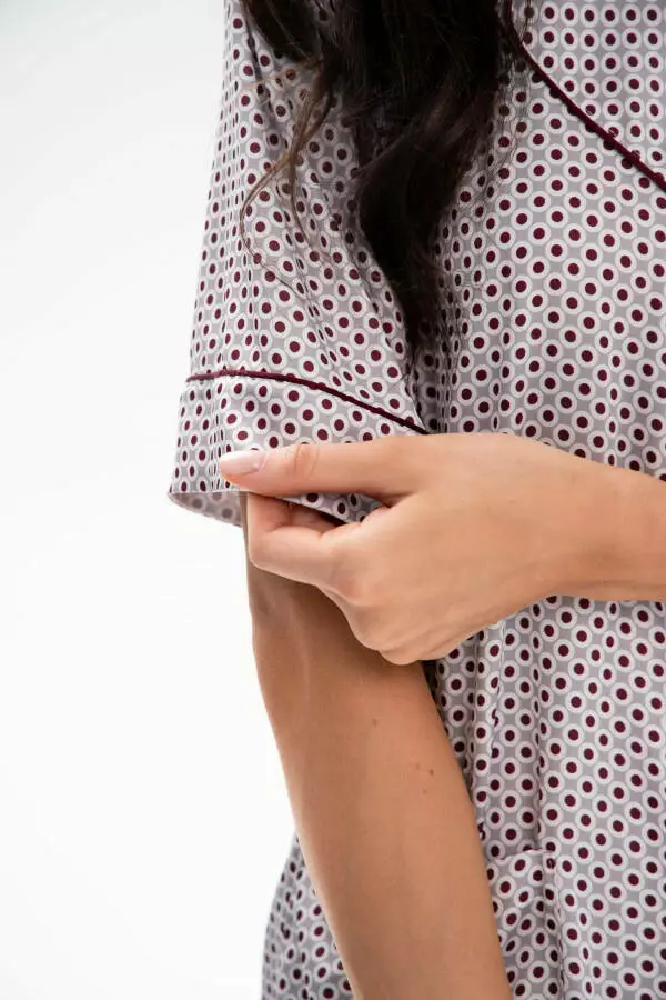 Комплект складається з двох частин: кофти з коротким рукавом та шортів. Кофта має стильний кант, що додає їй елегантності та робить її вигляд особливо вишуканим. Короткий рукав забезпечує легкість та комфорт у теплі літні ночі, дозволяючи вашій шкірі дихати. Шорти мають зручний еластичний пояс, що гарантує ідеальну посадку та максимальний комфорт під час носіння. Їх вільний крій дозволяє відчувати себе вільно та невимушено, що особливо важливо для комфортного сну.
