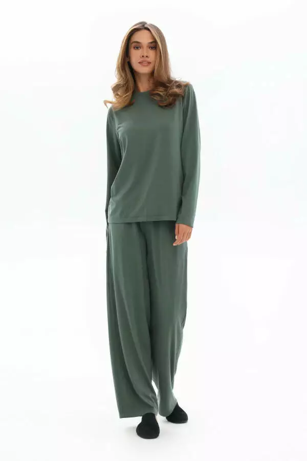 Піжамний оверсайз комплект кофта з довгим рукавом та штани German Volf 25025 вірідан XS/S 738235