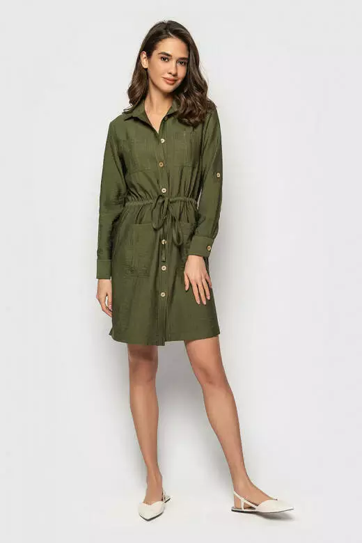 Це вбрання ідеально підходить для подорожей, прогулянок містом або відпочинку на пляжі. Сукня виконана з легкого матеріалу, такого як льон, що робить його зручним і дихаючим. Завдяки своїй універсальності, сукня Сафарі стане чудовим доповненням до гардеробу будь-якої модниці.