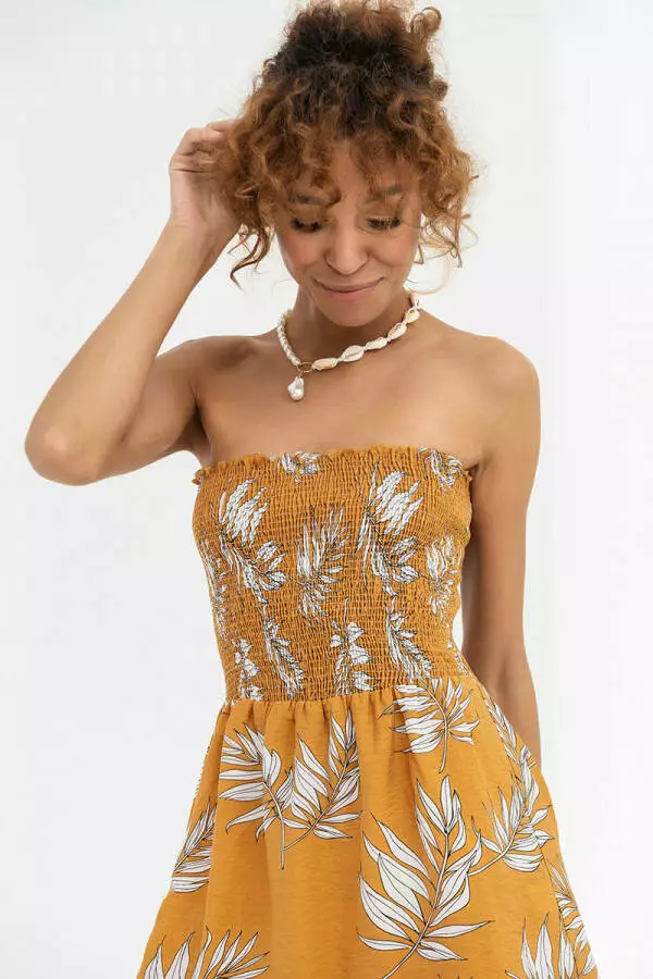 Сарафан пляжний середньої довжини без бретельок легкий літній з льону German Volf гірчичний L-XL 22005