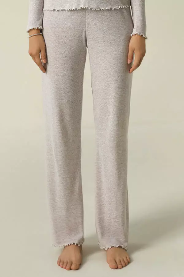 Жіночі штани з ажурного трикотажу з принтом у вигляді