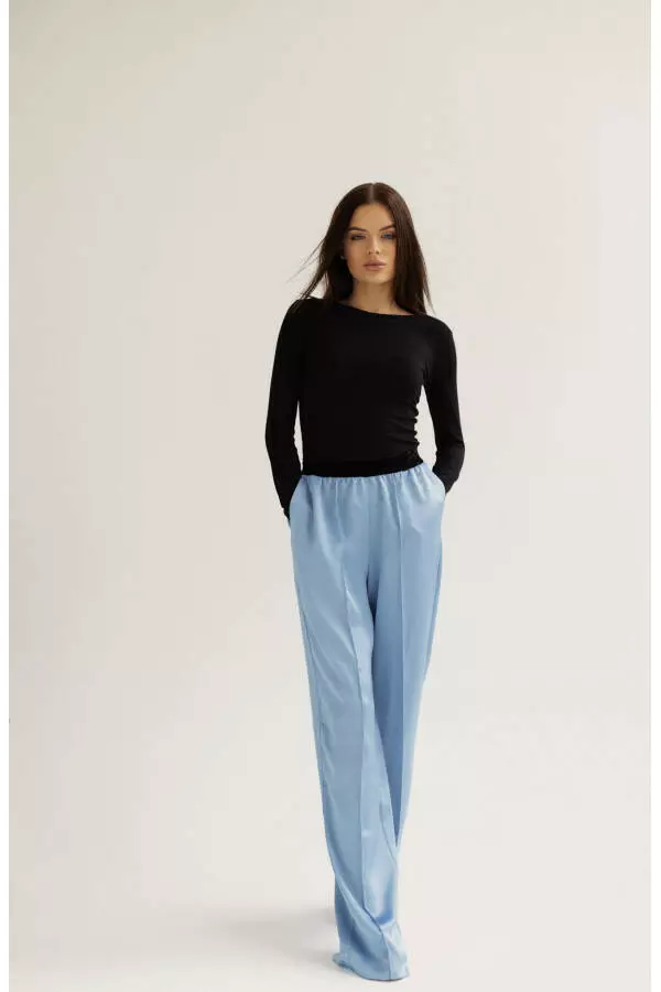 Піжамний стиль став крутою новинкою цього року. Так як образи в такому стилі комфортні та передають домашній затишок. Ці штани прямого крою із стрілами додає модного шарму, а два чудові варіанти кольорів, блакитний та жовтий, відкривають безліч можливостей для створення модного образу.