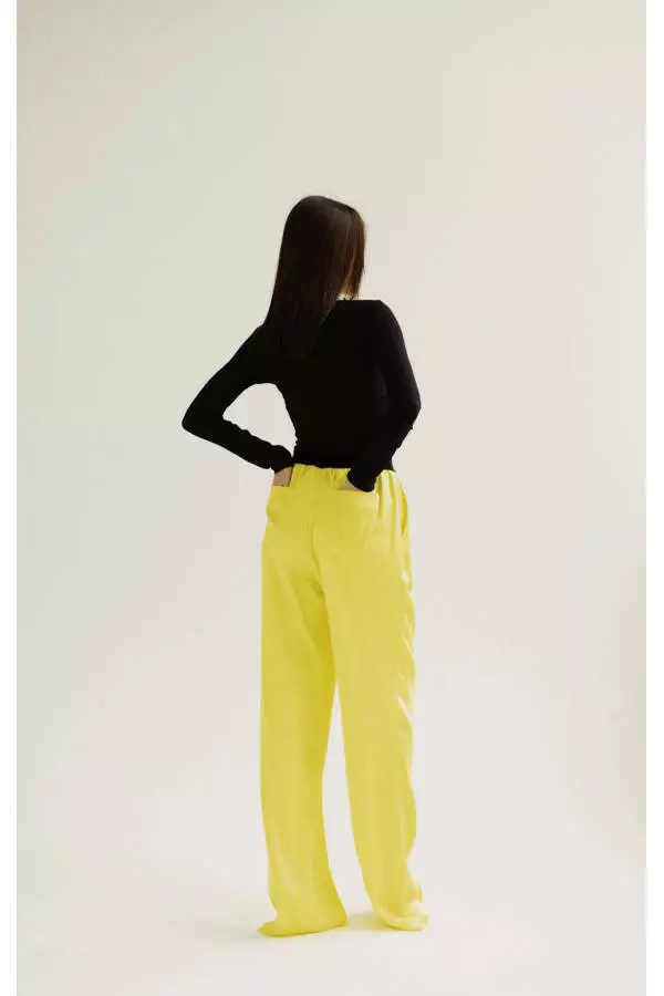 Піжамний стиль став крутою новинкою цього року. Так як образи в такому стилі комфортні та передають домашній затишок. Ці штани прямого крою із стрілами додає модного шарму, а два чудові варіанти кольорів, блакитний та жовтий, відкривають безліч можливостей для створення модного образу.
