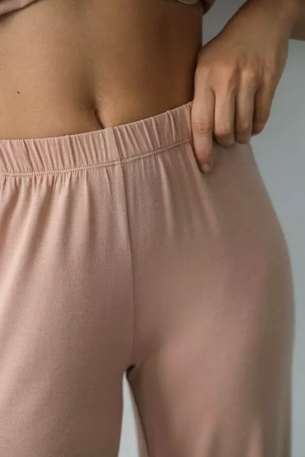 Бежевий колір – це класика, яка підходить для будь-якого стилю. Він додає образу спокою, легкості та елегантності, роблячи штани ідеальним вибором для тих, хто цінує витонченість навіть у домашньому гардеробі. Бежевий – універсальний відтінок, який підходить для будь-якого типу шкіри, додаючи образу природності та гармонії. Цей колір дарує відчуття спокою та затишку, що робить його особливо доречним для домашнього одягу, коли хочеться розслабитися та відпочити.