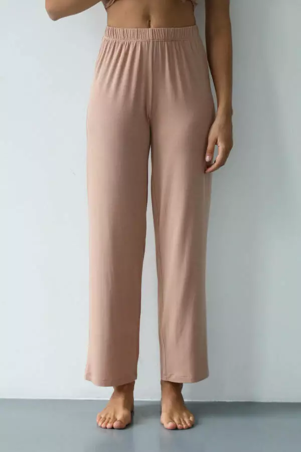 Бежевий колір – це класика, яка підходить для будь-якого стилю. Він додає образу спокою, легкості та елегантності, роблячи штани ідеальним вибором для тих, хто цінує витонченість навіть у домашньому гардеробі. Бежевий – універсальний відтінок, який підходить для будь-якого типу шкіри, додаючи образу природності та гармонії. Цей колір дарує відчуття спокою та затишку, що робить його особливо доречним для домашнього одягу, коли хочеться розслабитися та відпочити.