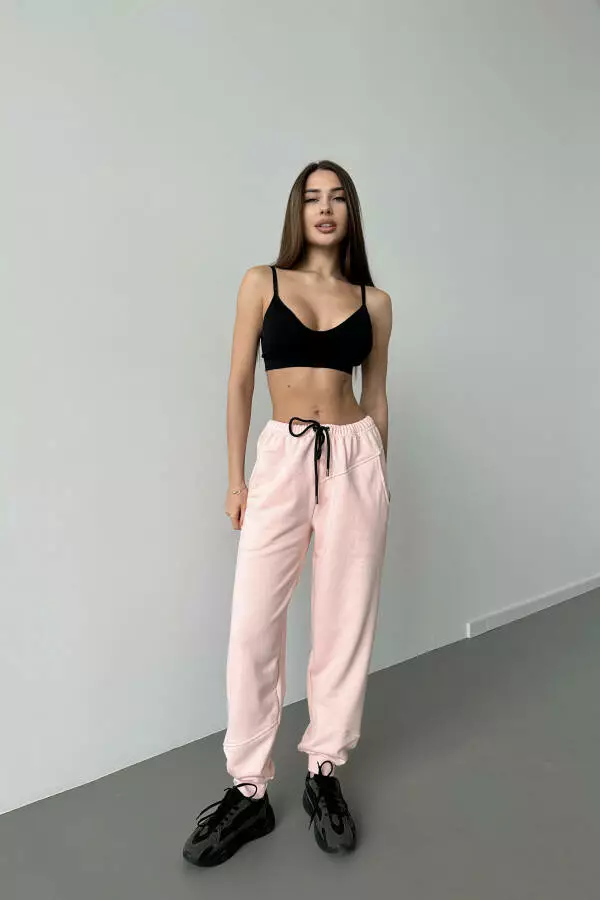 Жіночі спортивні штани з кокеткою у ніжному персиковому кольорі від German Volf – це поєднання елегантності, комфорту і стильного дизайну, що ідеально підійде для активного відпочинку та повсякденних образів.