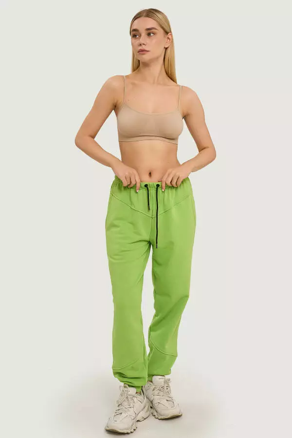 Жіночі спортивні штани з кокеткою у яскравому салатовому кольорі від German Volf – це стильний і зручний елемент гардеробу для тих, хто цінує комфорт та індивідуальність у повсякденних образах.