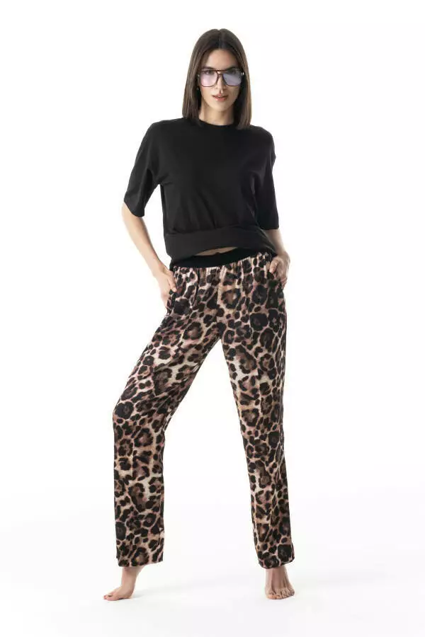 - Тип модели: Штани жіночі вільного крою принт леопард