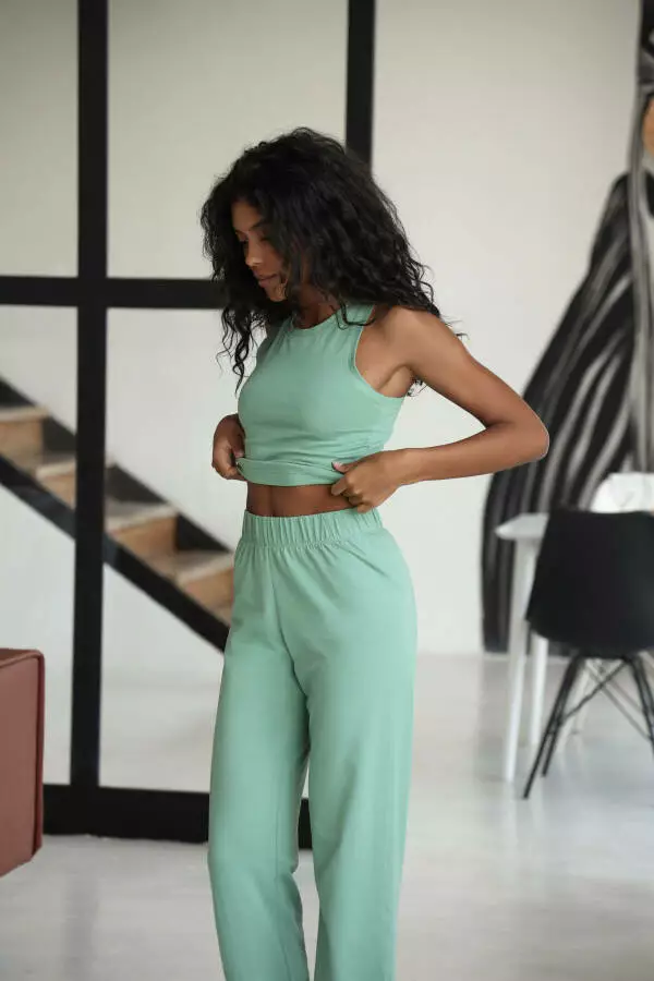 Споійний зелений відтінок штанів дозволяє легко комбінувати їх з іншими предметами гардеробу. Вони чудово поєднуються з однотонними топами, футболками та блузами, дозволяючи створювати як повсякденні, так і більш офіційні образи. Ви можете комбінувати їх з яскравими аксесуарами або мінімалістичними прикрасами для різноманітних стилістичних рішень. Завдяки універсальному кольору, ці штани стануть базовим елементом гардеробу, що підходить для будь-якої нагоди.