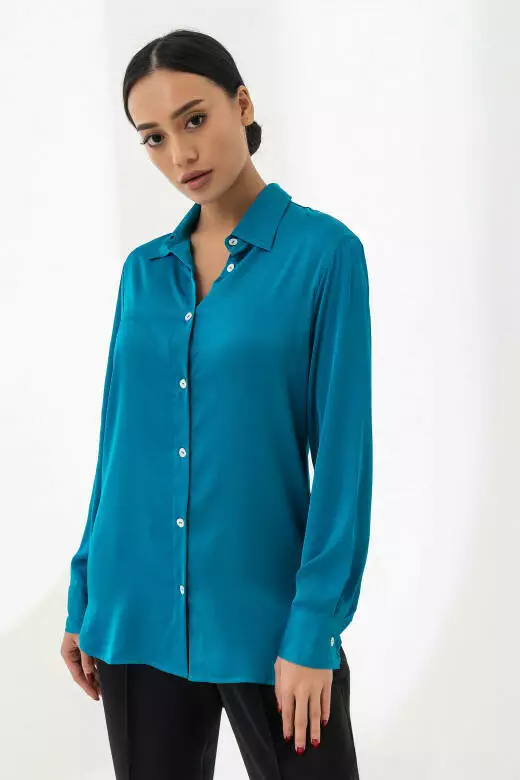 Сорочка шовкова жіноча, берюзовий колір, розмір XS