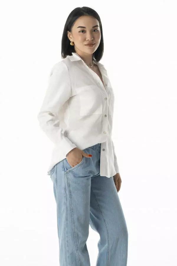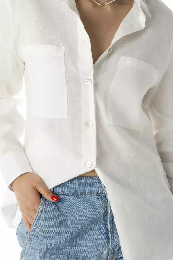 - Тип модели: Сорочка жіноча класична лляна з кишенями