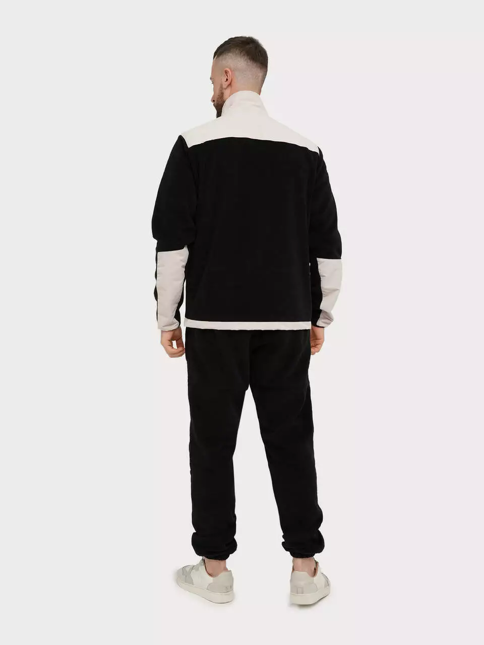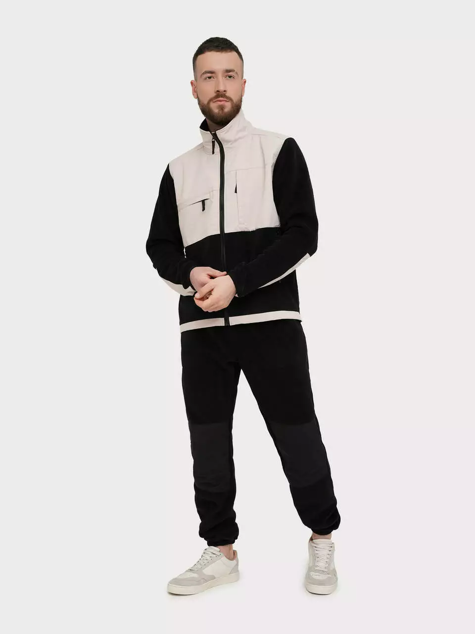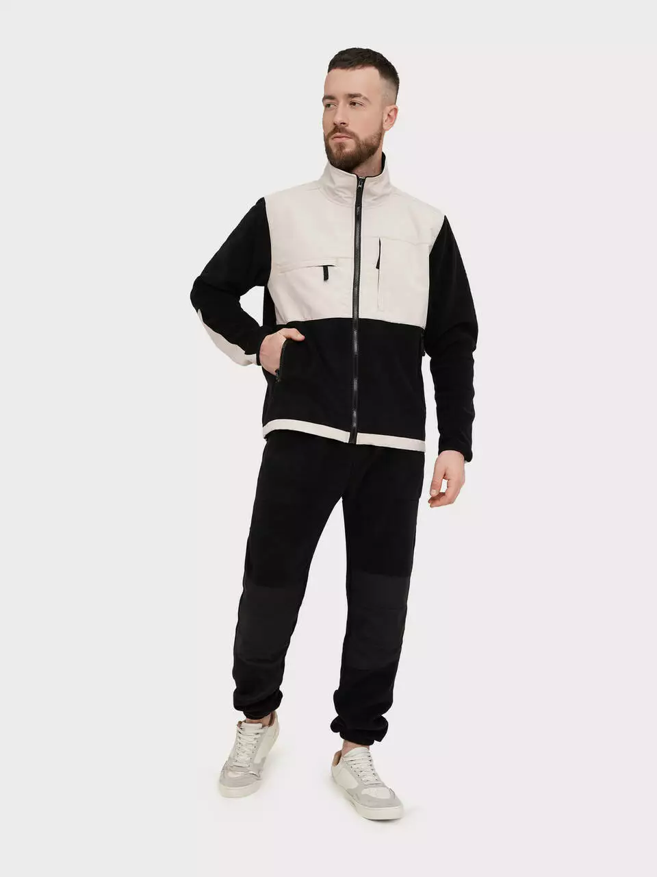Спортивный мужской костюм на флисе в черно-бежевом цвете - это