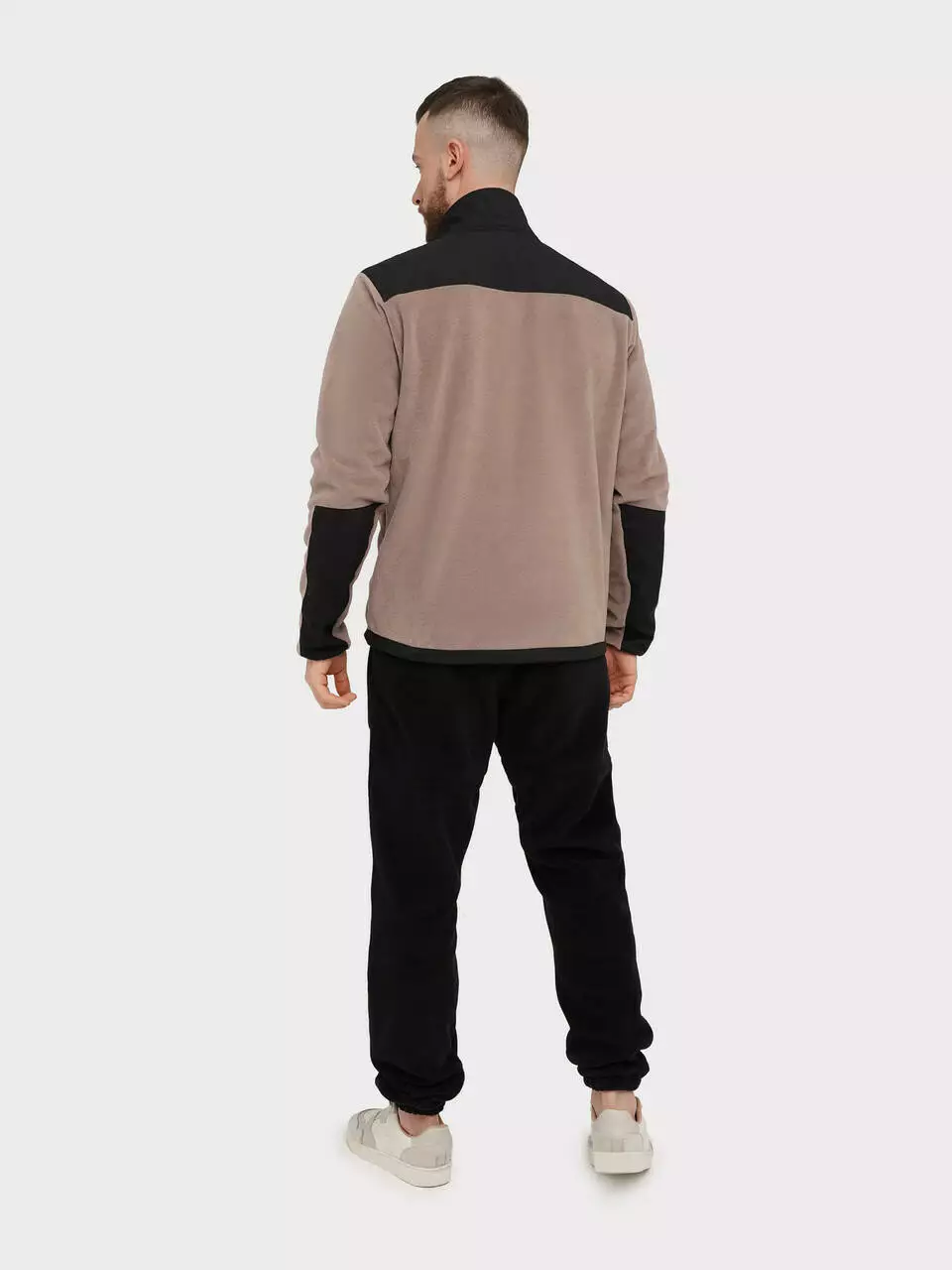із флісу кольору капучіно із вставками із чорної плащової тканини -