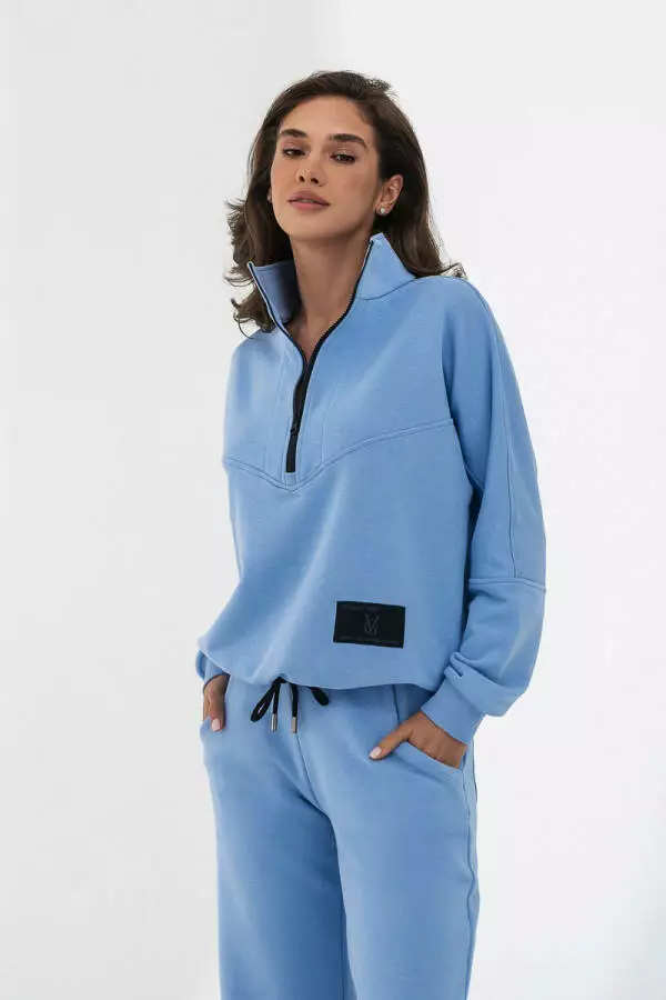 Штани та анорак небесно блакитного кольору доступні в у всіх розмірах для замовлення. Костюм теплий і комфортний, вільного крою. Тканина трикотаж, склад 70% бавовна, 30% поліестер. Широкий ворот з сріблястою блискавкою зробить ваш аутфіт дуже гарним і стильним. Штани супер комфортні, вільні з двома кишенями та резинками біля гомілки, за допомогою якої створюється крутий обʼємний образ. Натуральна тканина відводить зайву вологу та добре утримує тепло, пропускає повітря. Ще один плюс цього костюму, що він не кошлатиться і не линяє. Цей блакитний костюм з регланом ідеальний ніжний базовий варіант, але також можно носити його, як разом так і поєднувати з іншими елементами вашого гардеробу. З цією моделью ви завжди будете виглядати стильно, ніжно і різноманітно.