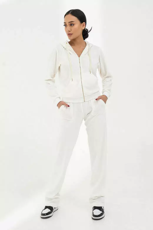 костюмом. Кофта с капюшоном и карманами, широкие брюки с