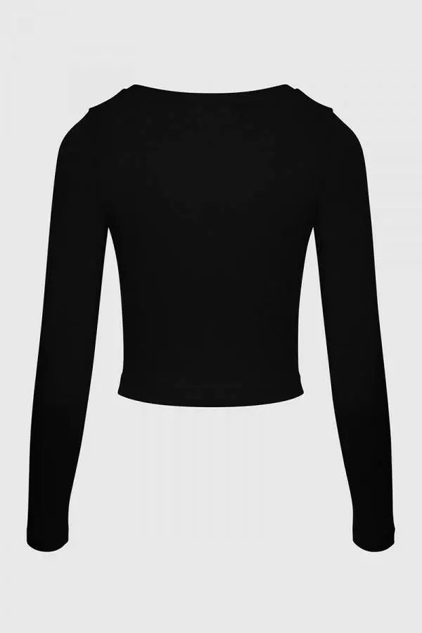 Стильний трикотажний жіночий укорочений лонгслів із рукавами German Volf Чорний S(42) 23112