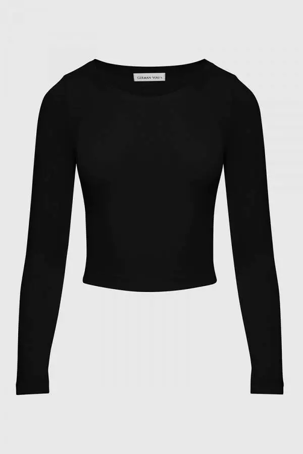 Стильний трикотажний жіночий укорочений лонгслів із рукавами German Volf Чорний XL(48) 23112
