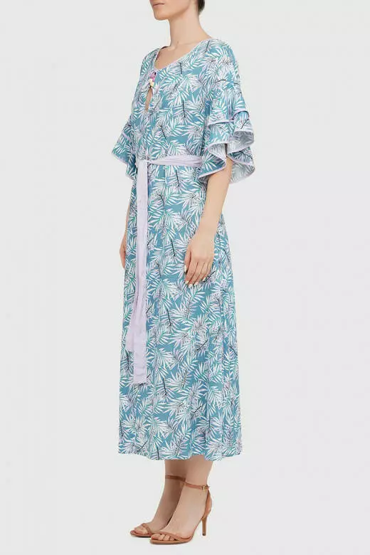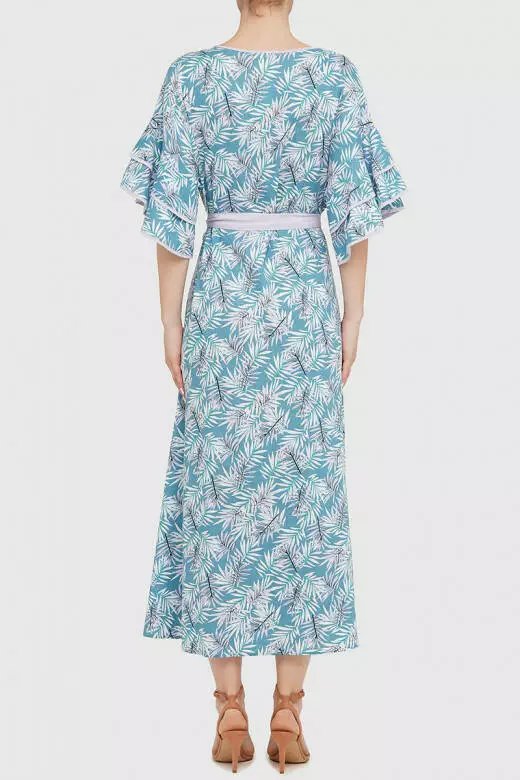 Лляна тканина завжди виглядає стильно та елегантно, особливо у поєднанні з воланами та квітковим принтом. Ця сукня обов'язково приверне увагу своєю унікальністю та неповторним стилем. Безсумнівно, це чудовий вибір для будь-якого випадку.